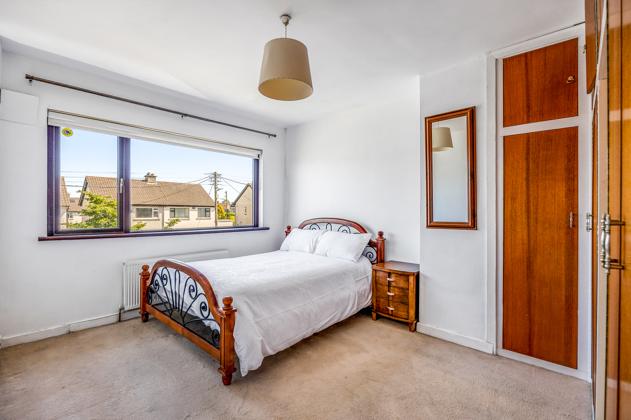 Carpet, ceiling light, built in wardrobe, window blind, hot press with insulated immersion and wooden shelving, curtain pole, pair of curtains.