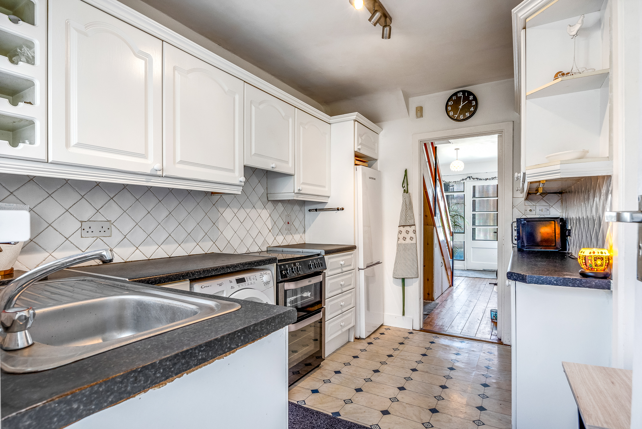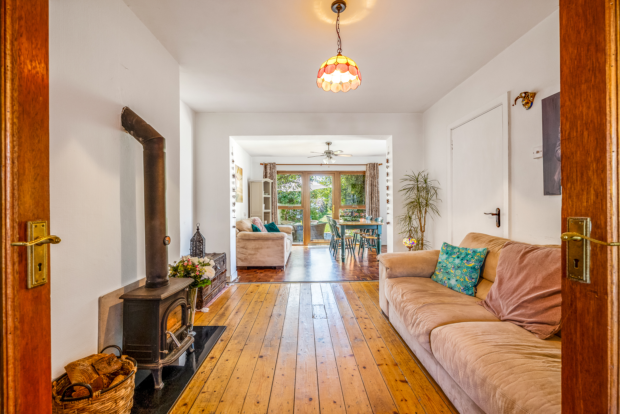 Upon entering the property one is welcomed by a bright hall, to the left there is a spacious living room which opens through to a well generous family/dining room with solid fuel stove and door to the rear garden. To the rear there is a galley style kitchen. Rising to the first floor one finds two spacious double bedrooms and a large single bedroom. A stylish shower room completes the accommodation.