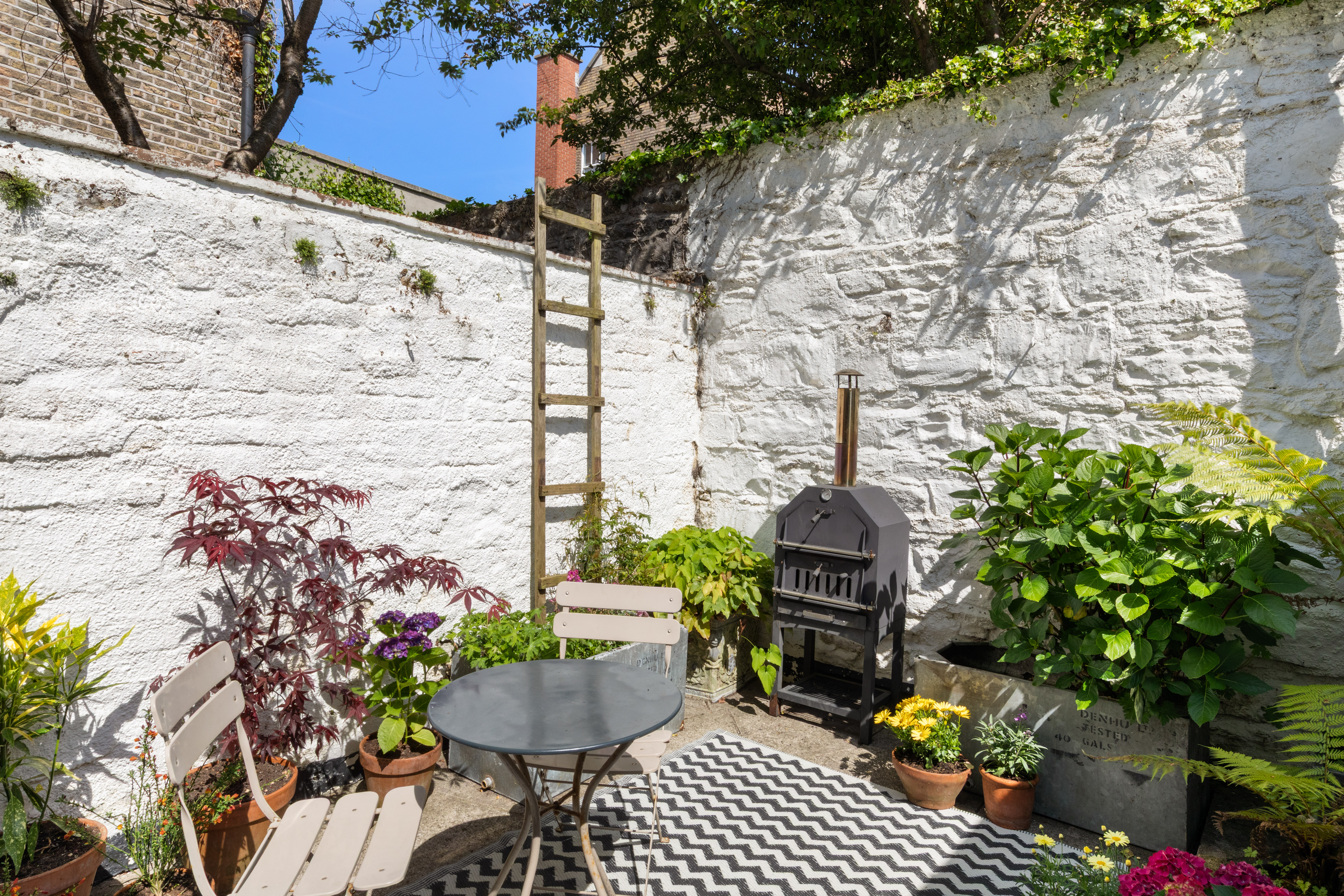 To the rear of the property there is a quiet, sheltered and private courtyard garden with period stone walling. To the front there are two sunken terraces, the one off the kitchen boasts staircase to the garden gate and a wood store. There is on street disc parking subject to DCC approval.