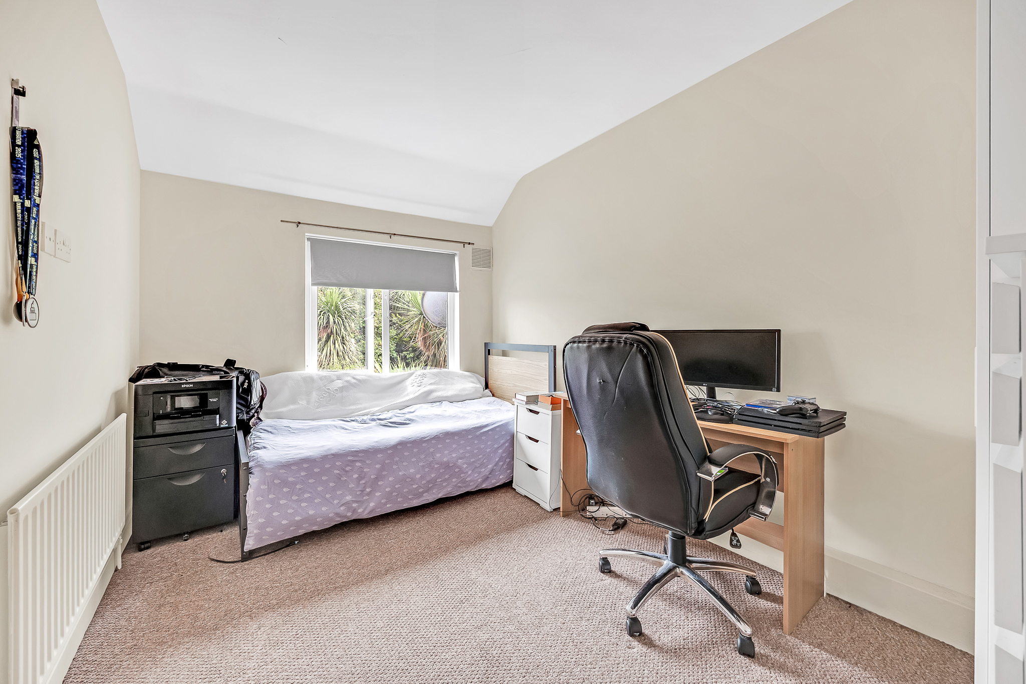 Outside to the front there is a mature landscaped garden laid out in lawn and hedging with mature planting. To the rear there is a generous and bright east facing garden bounded by concrete walling and set out in lawn with mature planting.