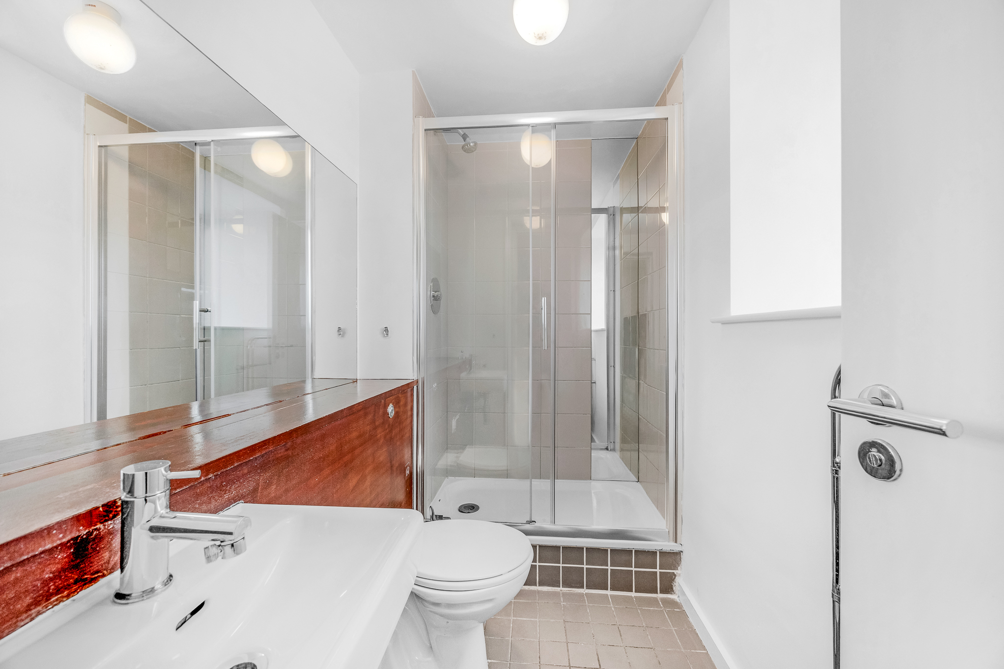 Tiled floors, Dimplex towel rail, bathtub with shower, WC & hand basin.